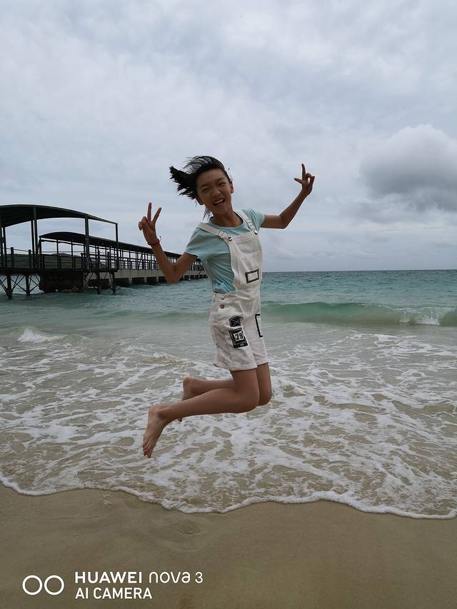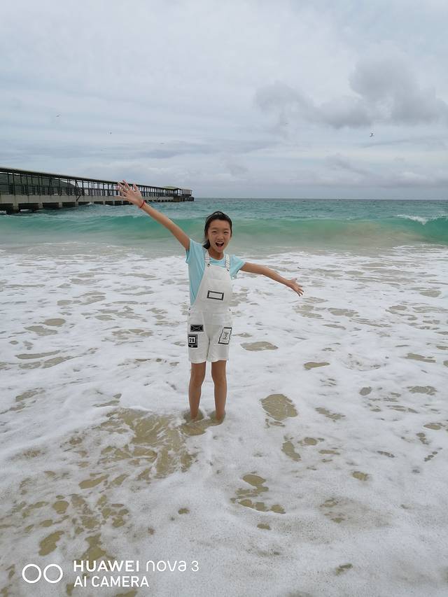 看到这里的水很蓝,沙子很细,宝贝又开启了疯狂模式😊