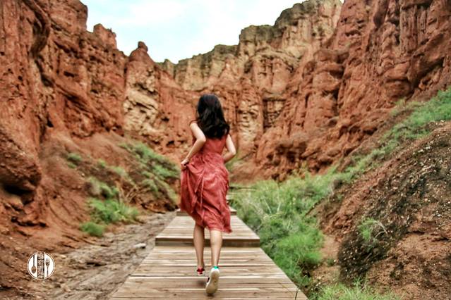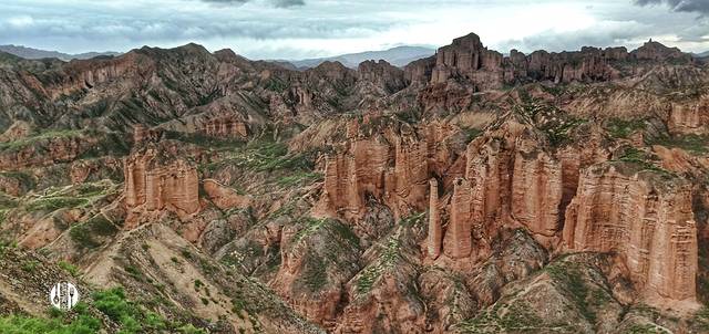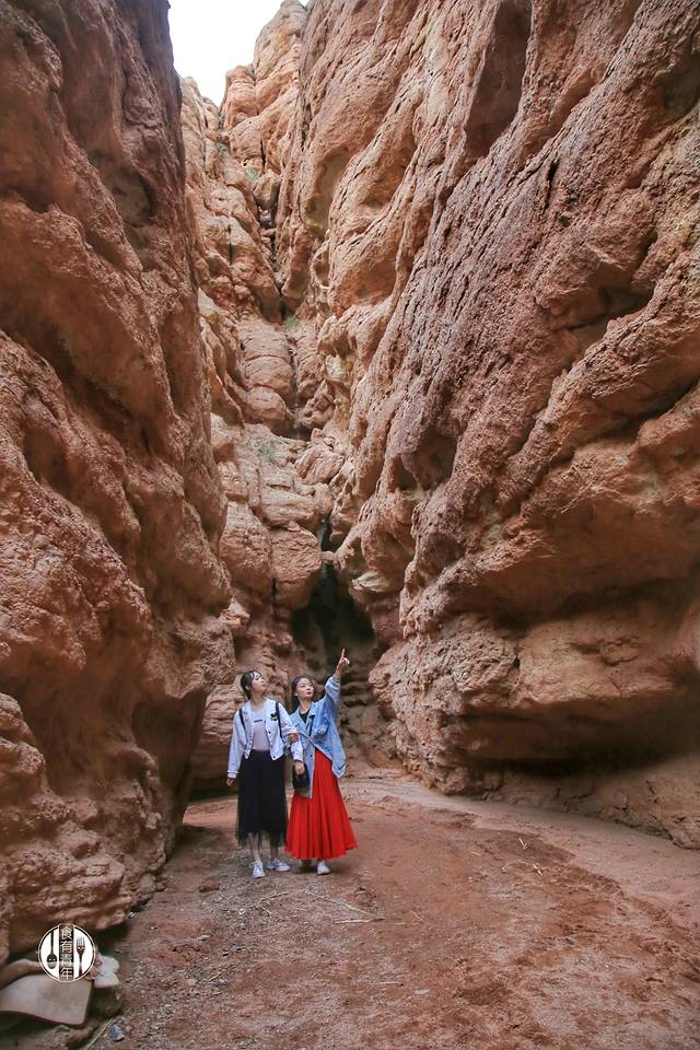 在七彩丹霞还有一个隐藏打卡点,叫做万象土林谷,完全是另外一种感觉的美。红色秘境,岩层红色,特别是楼体状,格子状的,窗棂状宫殿式丹霞地貌,非常特别。