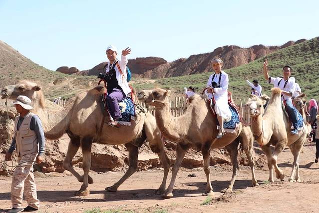 在这里还有一个特殊的观光项目,那就是乘驼。我的第一次乘驼在张掖七彩丹霞,尽管是路不平的颠簸,但这就是魅力之处。