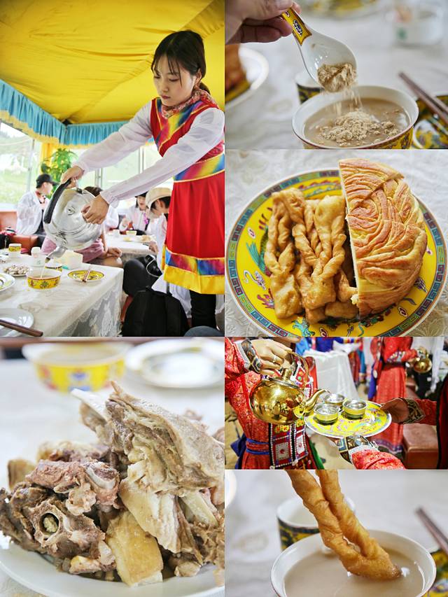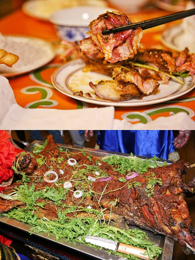 在充满民族特色的小镇帐篷里,接受他们对远方重要贵宾的礼遇,烤全羊,献上哈达,喝酒,各种地道特色小吃,水果银杏超甜好吃,还有酥油茶,奶茶非常香浓。