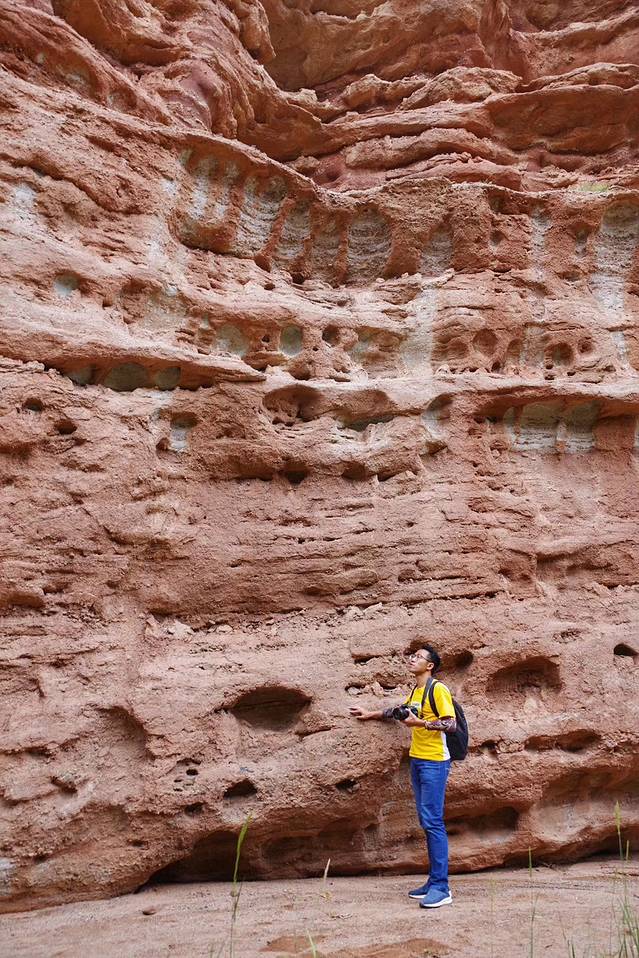 小心翼翼只敢轻轻得触碰,不想打破这亿年的壮观之境。触摸亿年的景观,透过岁月积淀的山石痕迹,过去的很久历史长河里,这里的美不被人所知,如今如发亮的金子,闪着光芒,在这里拍照,大自然的背景是最好的。