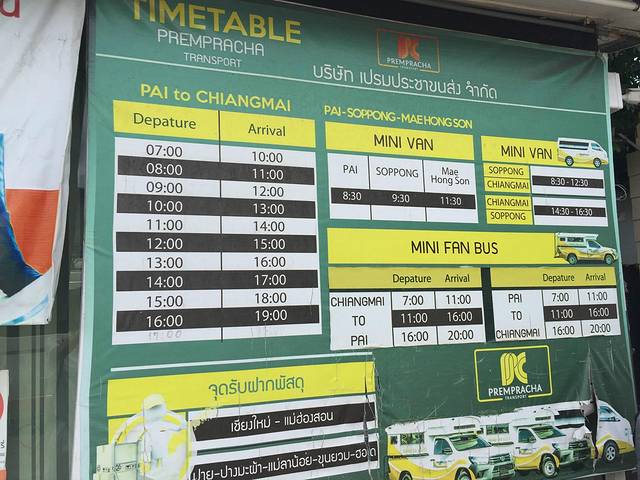 到达拜县汽车站,可以根据时刻表提前购买回清迈的车票。车座为12座、150泰铢/人。