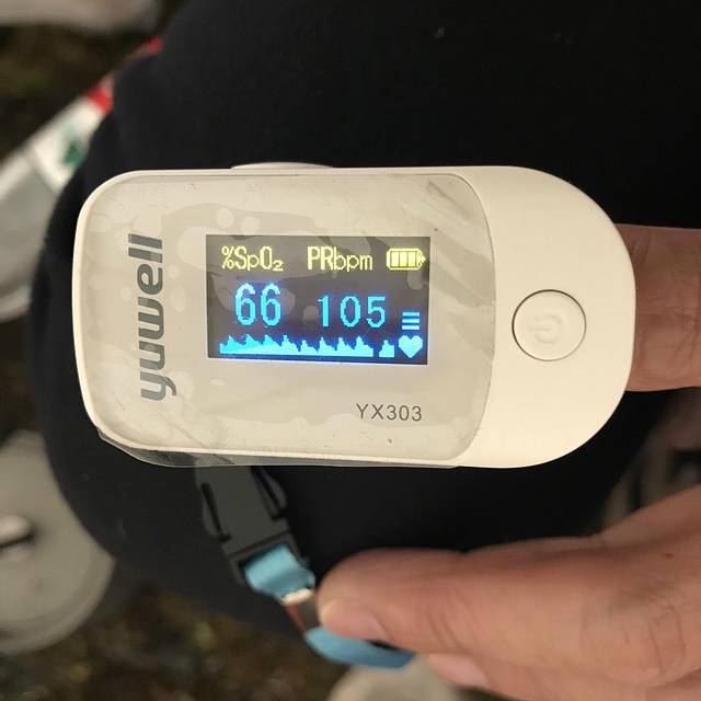 钥匙拿着血氧仪来查看每位队员的状态,很多人反应有轻微头疼。我测完后才发现,除了血氧已经低到77,心率90,这可是我平时慢跑时候的心率啊……钥匙说屋里人太多了,本来海拔就高,睡一晚上氧气浓度更低,建议大家都赶紧起床去外面呼吸下新鲜空气,头疼马上会得到缓解。
