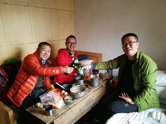 “没有什么活着更宝贵的了”,大家安静地听着豆豆回忆,“也许他因为高反,也许他因为其他,我们都不得而知,也希望大家都不要猜测。此时此刻,我们愿他在天堂可以攀更高的峰,走更远的路,看更美的风景!也敬我们自己!活在当下,珍惜眼前!来,干杯!”(这个“十一”真的不平常,据后来各种报道的统计,十一期间,国内洛克线2位、贡嘎线1位、那玛峰1位、小五台1位……国外尼泊尔道拉吉里峰南坡雪崩,一支韩国登山队的5名队员和4名尼泊尔导游全部遇难……)
