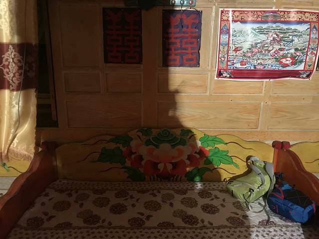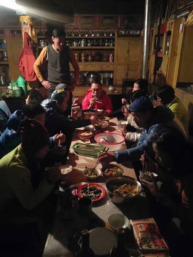 抵达村中甲玛家已是将近晚上10点,老板早已给我们准备好了热乎乎的饭菜和香浓的酥油茶,“钥匙”(天津小分队的领队)命大家赶紧卸下行了后吃饭,并在吃饭时交代了一下明天的行程安排和需要准备的物资。