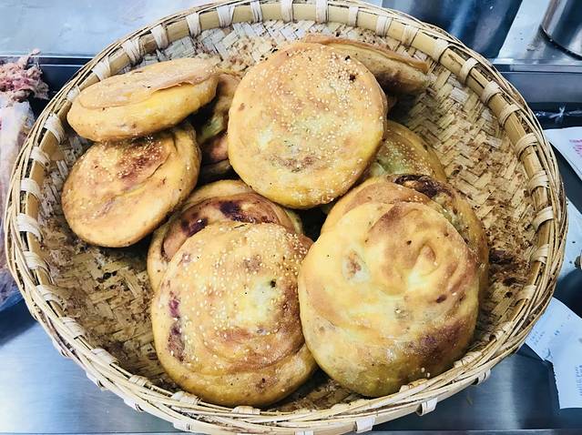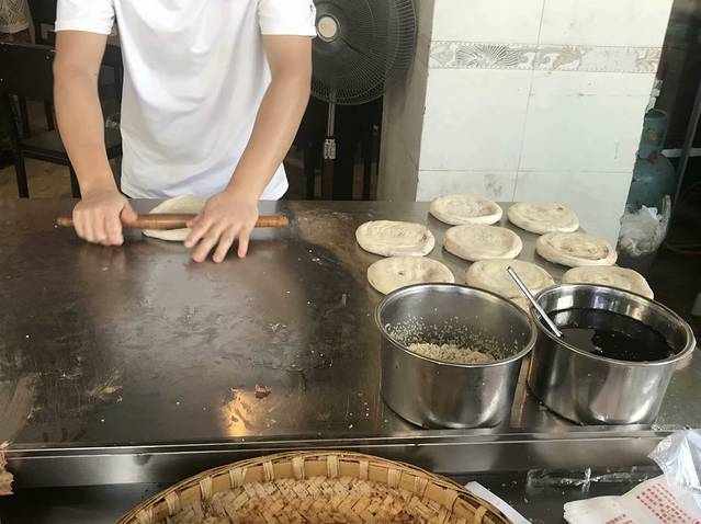 每个锅盔要反复填两遍肉,难怪这么好吃