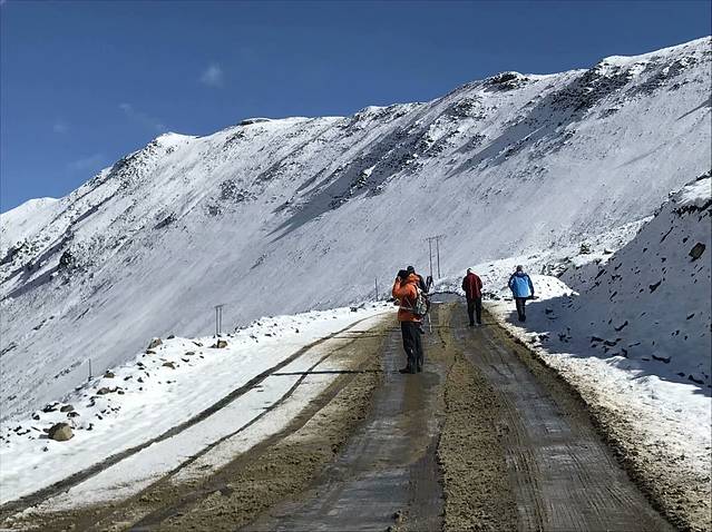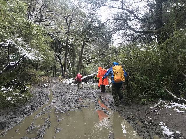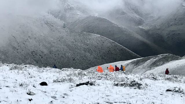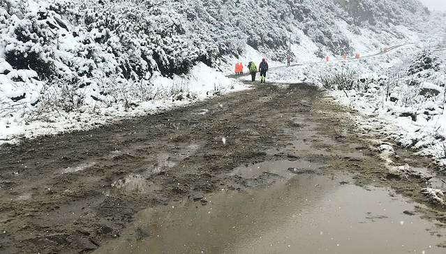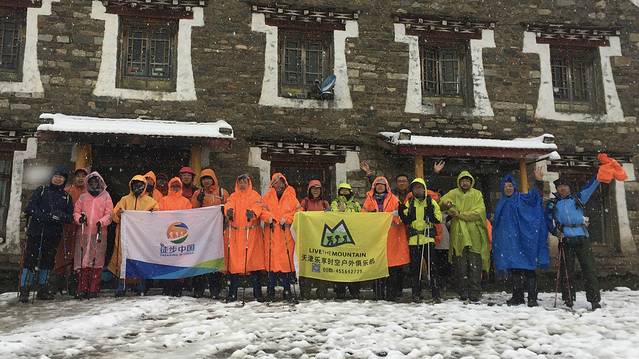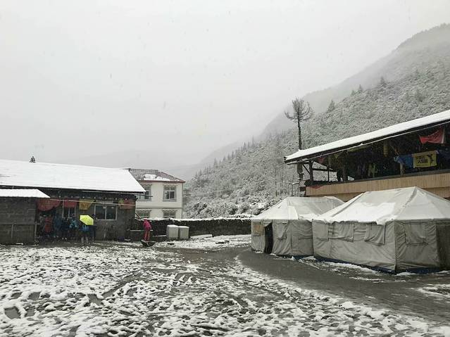 下午2时许,海拔已过4300,雪势突然加大,且伴有阵风,道路也变得泥泞不堪。许多队员开始出现体力不支、头疼、胸闷等症状,领队安排津豫两队队长及时趁早联系马帮,将这部分队员安置到营地。特殊情况也可安排原路返回,天黑前还可返回至玉龙西村。