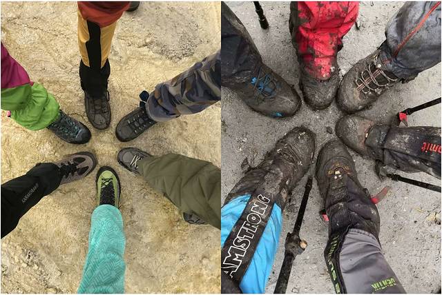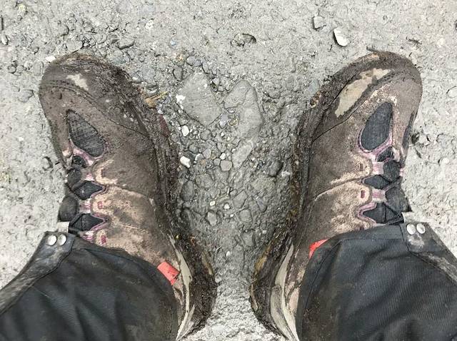 左图是泉华滩时拍的鞋子,右图是走过巴王海后……已经面目全非