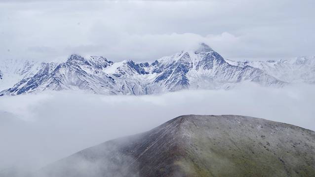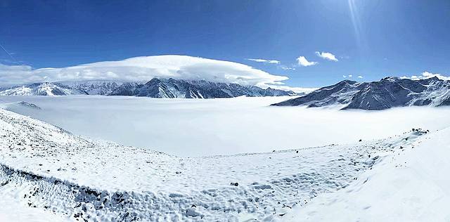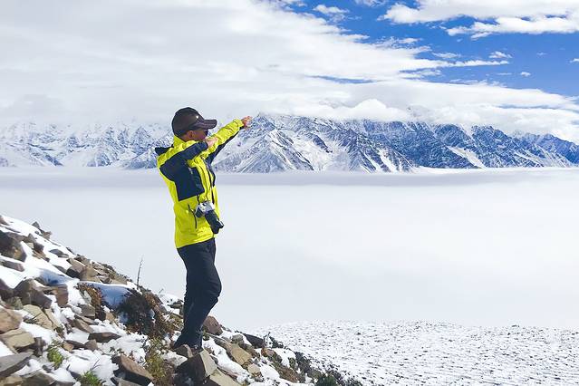 12:06分,雪停雾散,贡嘎终于完全揭开它神秘的面纱,向我们展示它的宏伟和震撼。很多队友兴奋得开始尖叫、呐喊。神医赶紧告诫大家:贡嘎是神山,不要大声喊,更不要在拍照时用手去指,要心存敬畏。是啊,贡嘎之神,就是能让人无论此前经历种种,在见到它的那一刻都能豁然开朗。