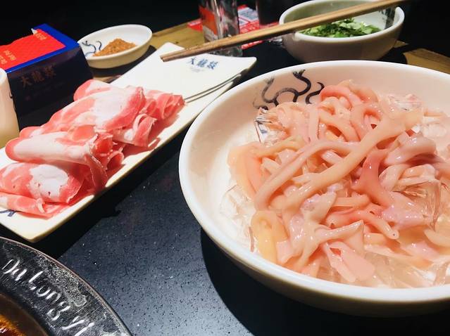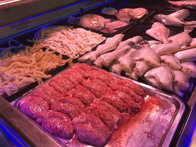 成都火锅必备,脑花、鸭掌、鸭肠、还有一种不知道叫什么的鱼