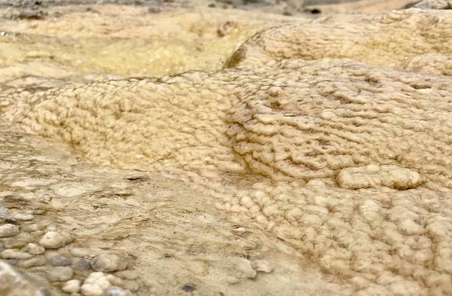 泉水中的重离子经多年沉积硬化,类似于石钟乳的过程