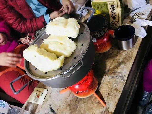 我见娜娜状态尚佳,但豆豆明显开始心有余而力不足(这可是后面还要爬那玛峰的人物啊……),便建议稍作停留及时补充些能量和水,后面好一鼓作气,她俩一致同意。