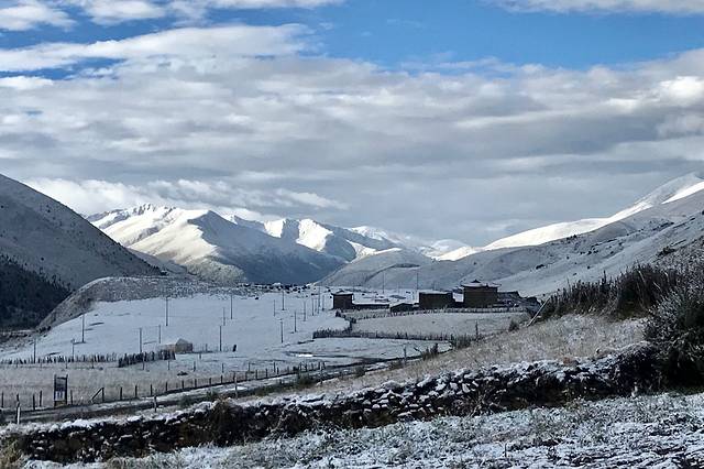 晚上7点左右,我们所乘坐的大巴被滞留在色乌绒。原因是由于临近十一,不允许藏区外车辆进入。此时海拔已上升至3000左右,夜色渐浓,天空也开始下起小雨,队员们从成都出发时大多穿的比较单薄,焦虑在车上慢慢弥散。领队焦急地跟玉龙西村的接应联系派车来接我们,一个多小时后,终于搞来6辆小车,大家赶紧转移物资,此时天已黑透。后来才从朋友圈得知,我们还算是幸运的,因为第二天,整个折多山遭遇同期50年一遇的大雪封山,众多打算十一期间来此旅行的人被困山上,交警连夜冒雪疏导遣返。