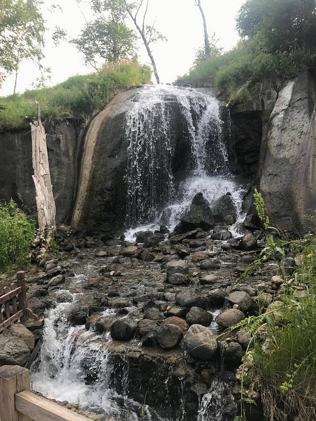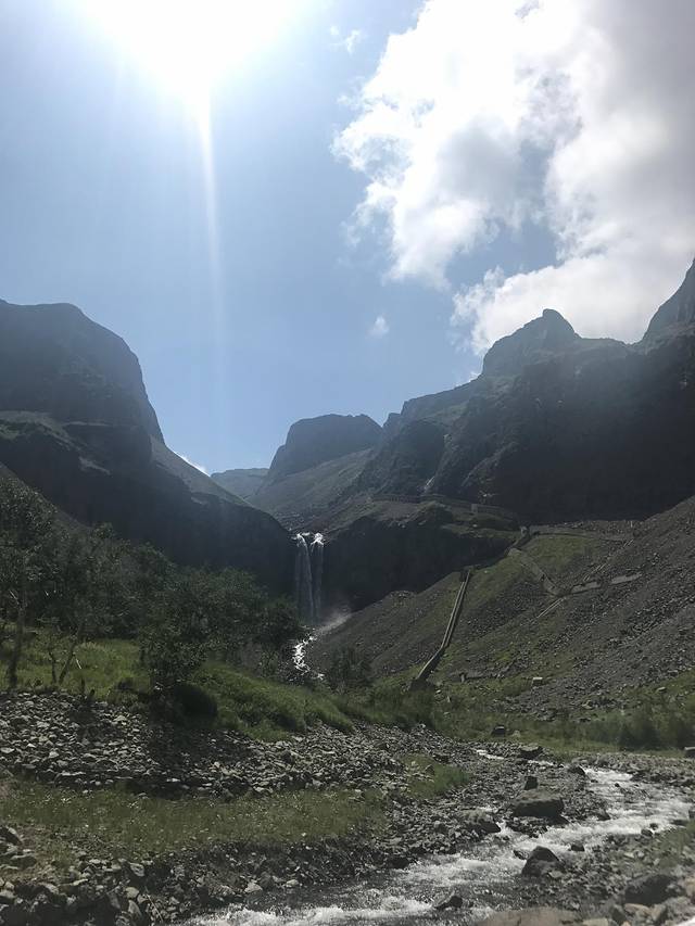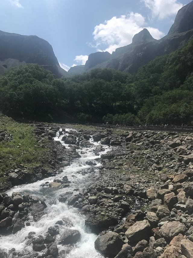 到瀑布要走挺长的一段路,经过小木栈桥,再路过无限奔涌的小河流和温热的一眼温泉,其实并没有想象的壮观,但山上的风景和空气还是非常不错的。
