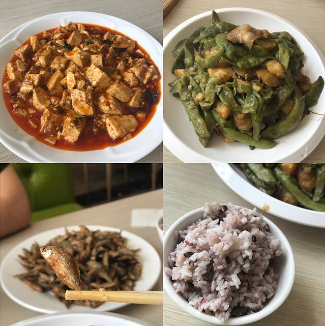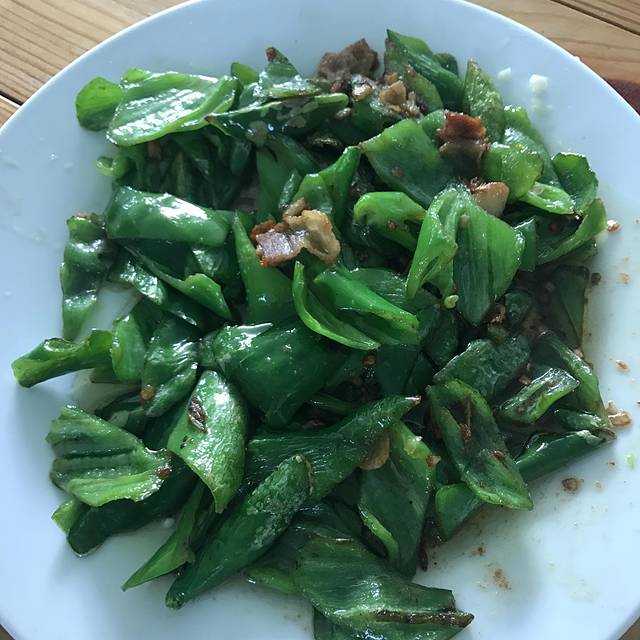 出发有点晚,中间还遇上修路又改路线,所以一直在赶路。这块比较偏,只有两个小饭馆,随便选了一个吃,来见识一下青椒炒肉。