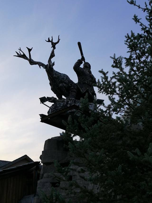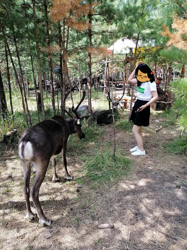 这边我还是很期待的,不过不同于奈良看着纯良的小鹿,这边是驯鹿,顶着大大的角,所以会吓人一点,但实质还是挺温顺的,如果你再拿着吃的,也一样没有尊严地往上凑。然而怂怂的我画风是这样的哈哈哈,看到后面大叔嫌弃的眼神了么.....