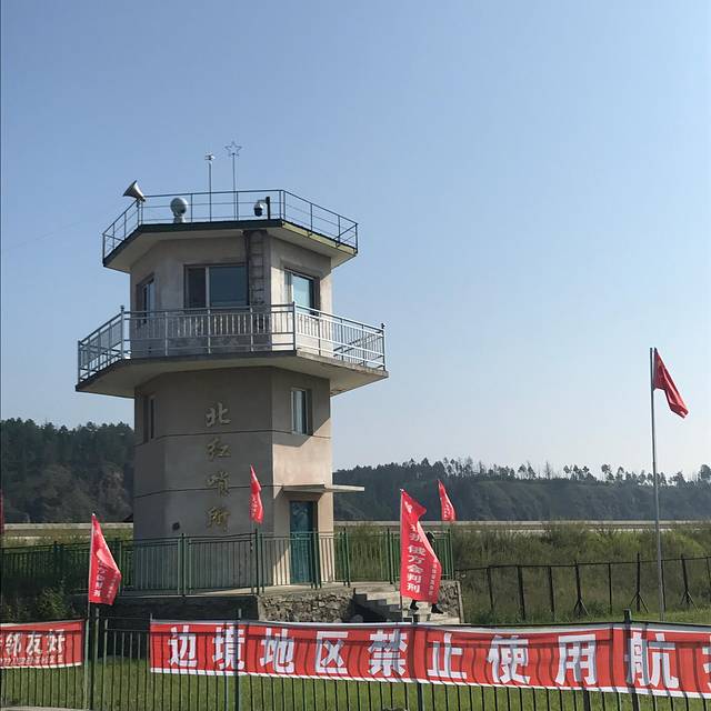 附近有个岗哨似的,有兵哥哥站岗,很多人在照相,但中间拦下了一个人查了半天手机,不知道是不是因为照到了兵哥哥或者是敏感地带,所以大家也要注意一下。