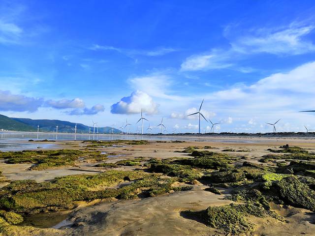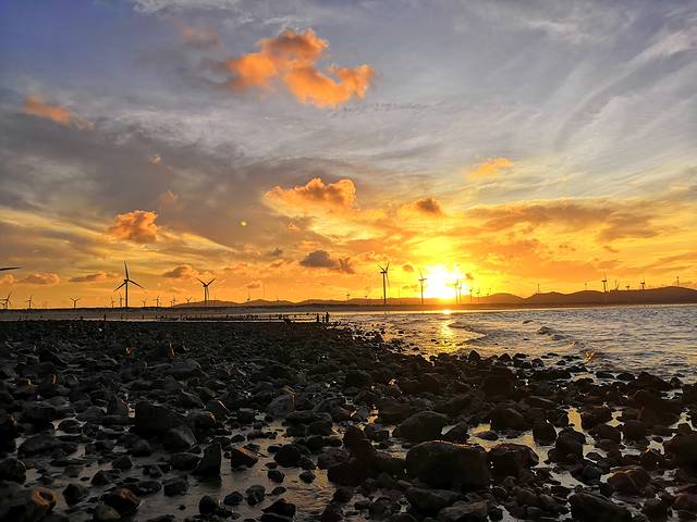 这边适合傍晚过来,建议四点半从北港村出发,五点到达风车田可以拍拍风车,然后赶海抓抓螃蟹跟贝壳,螃蟹都在石头缝里需要眼力与速度,都比较小不能吃,纯粹好玩,当地人会去找螺与贝壳这个要刨很深的坑