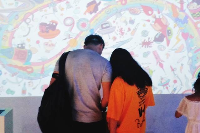卤水实验室能调制臭气指数,在电子屏上操作,小朋友们特别喜欢玩这个。填色墙的操作方式是选择想要的图案进行填色,非常解压。