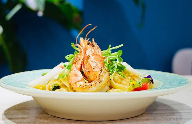 确实非常的冬阴功,很开胃哦,可以在这里吃到这个味道也是极好的,换个口味感觉更赞,面条是意面,煮的很有劲道。