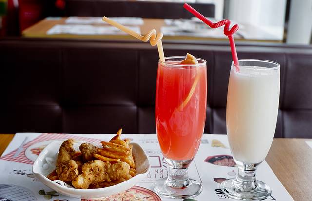 会喝点小酒的,吃牛排还是要搭配红酒,配合着红酒的干涩和牛肉的细嫩,这两种搭配是很美妙的。特调饮料做的也是非常好看,很夏天的味道,适合不会喝酒的你~