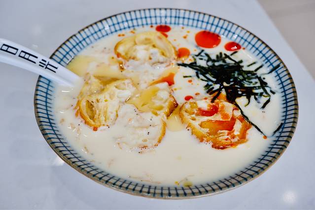 豆浆是有咸的和甜的两种,南方人貌似比较喜欢吃咸的,但是说实话真的是咸豆浆颜值更高、味道更好哦,里面的料也很足,油条、紫菜条、虾皮,红油,一个都不能少,很好喝。