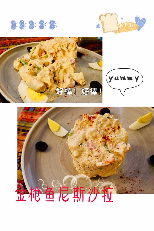 上来的时候是一个圆柱状,慢慢扒开来,份量好足啊,金枪鱼、土豆两者的味道很完美的结合了,绵密的土豆让本来不喜欢的我觉得还不错,这个沙拉味道还不错哦。