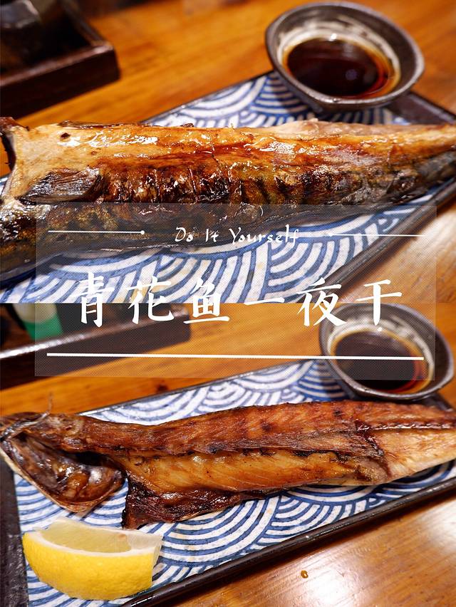 这个是烤物,自然是干干的才好吃,挤上柠檬,去了鱼腥味,蘸着醋吃还是非常不错的,没想到半条青花鱼会有那么多肉哦。