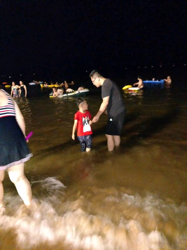 豆豆玩到晚上9点多还不想回去,衣服全湿透了~