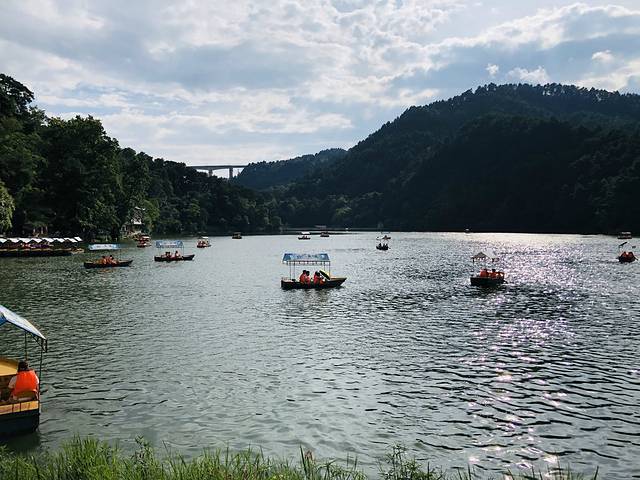 从山上下来,有一个湖,很多人在划船。我们算了下时间,决定回程时,去南昌玩一下,再回家,于是在湖边把去南昌高铁票和酒店都订了。