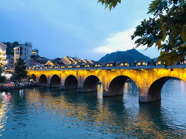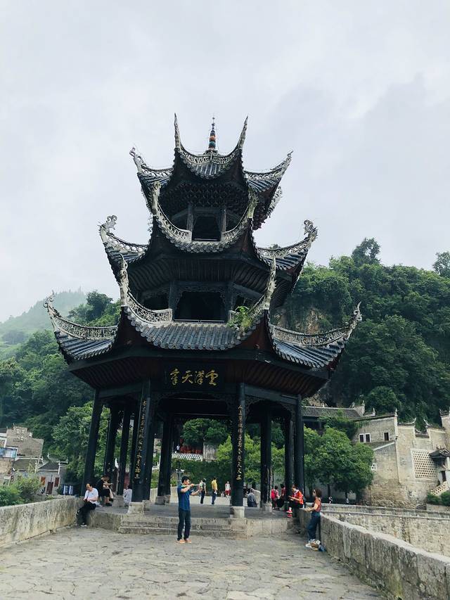 今天又是早起的一天,5点半起来,赶上6点40分去凯里的火车,原来这是镇远的第一班火车,打车到达火车站,火车一个多小时,顺利到达凯里火车站,乘公交到凯里客运站,买了10点10分去荔波的汽车票。原以为去从凯里去荔波需要4个多小时,没想到一路走高速,3个小时就到达了荔波汽车站,打车到达酒店,很顺利。酒店就在荔波古镇的正门,门口就有去大小七孔景区的公交,很方便。放好行李后,计划今天先去大七孔景区,于是出门,到达后,发现景区通知由于水位高于安全线,大七孔全天关闭,而这会已经下午3点了,玩小七孔时间也不够,于是我们决定回酒店休整下,明天再来玩。