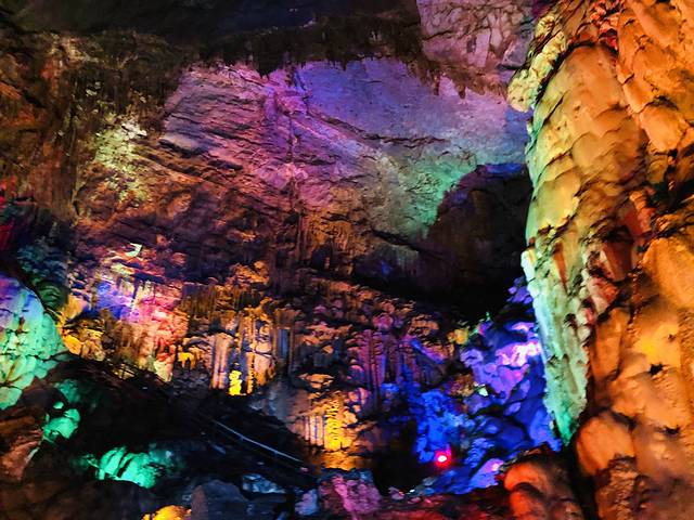 天钟洞很凉快,但配上了各色灯光,感觉好像妖怪洞