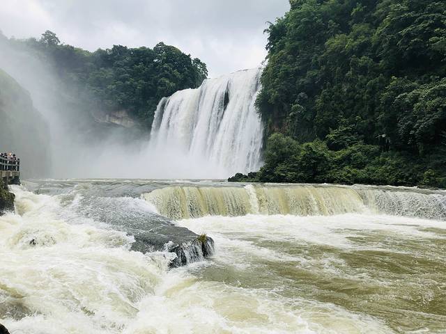 今天好拼,早上四点半起来,赶6点的火车去安顺。从贵阳到黄果树瀑布有很多方式,因为我们住的离火车站近,所以选择了火车。到达安顺火车站,乘公交到安顺东客运站,乘大巴到黄果树景区。大景区里分为三个景区:陡坡塘景区,天星桥景区,大瀑布景区。每个景区之间可以坐大巴来往。我们的游玩顺序是:大瀑布——天星桥——陡坡塘。大瀑布是最精华的部分,天星桥最费时,陡坡塘最省时。游玩下来发现可以这么玩:陡坡塘——大瀑布——天星桥。陡坡塘和大瀑布是连着的,看完陡坡塘,可以徒步到大瀑布景区。天星桥景区全程7.5公里,很多人走完上半程就从出口出去了,但前半程很多都是人造景,后半程比较好看。我们从荔波过来,看过类似的景,并没有觉得很震撼,全程走完,唯一感觉就是累。4点多出景区,选择了直接回贵阳的大巴,回到贵阳已经7点多,然后再乘车去看“白宫”,真正晚餐时,已经9点了,真的是太饿了。