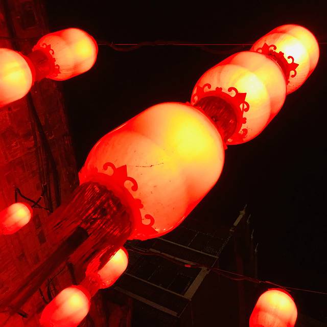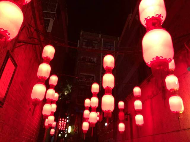 夜晚的红灯笼真好看。