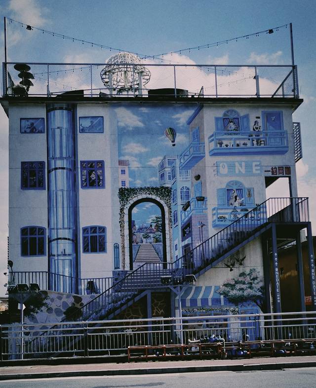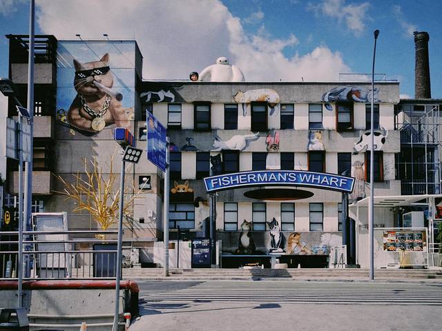 便利店往右一点点距离就是整个渔人码头醉吸引我的罐头厂啦!满墙的宠物涂鸦和屋顶的大白,这种风格我以前只在日本才看过,太卡哇伊了~这里是动漫世界吧!