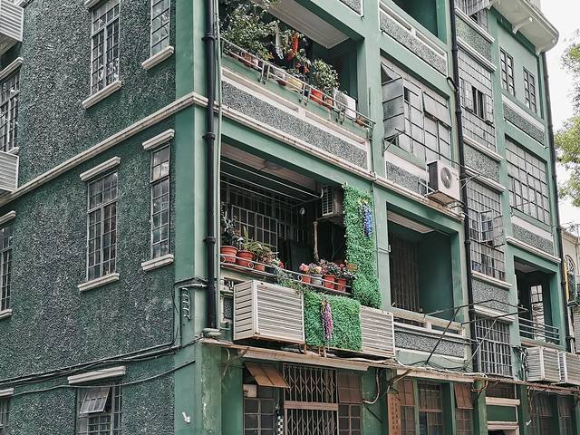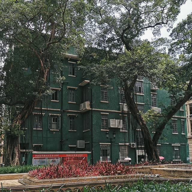 沙面岛这边很多建筑墙体都是绿色的,和周边的树木很好地融合在一起,虽不张扬却也格外醒目。