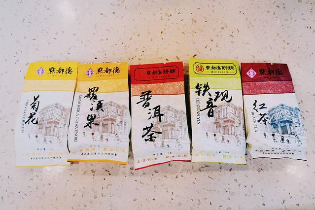 早茶早茶,总归是从茶先开始的,入座后第一时间就有服务员过来让你选择一种茶包冲泡,桌子边有着酒精灯上实时加热的金色茶壶烧着热水,可以一直续杯。话说这茶包一字排开还是蛮好看的。