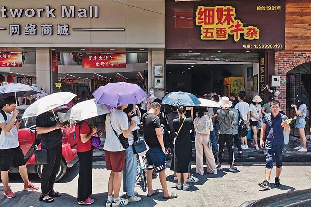 吃完甜点后逛到的传说中的那家细妹五香牛杂,我表示现在图中的人算少的(然而还有一大半人没拍到)。。后面下午逛回来人更多!这家拔草失败~放弃