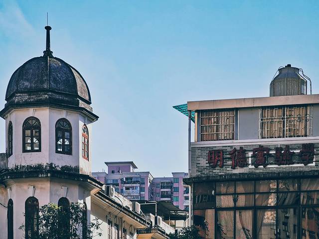 整个顺德街道给人一种低配版古巴的感觉。各种低饱和的红黄蓝绿组成各式建筑配色,配上好天气的话,让人心情特别舒畅。