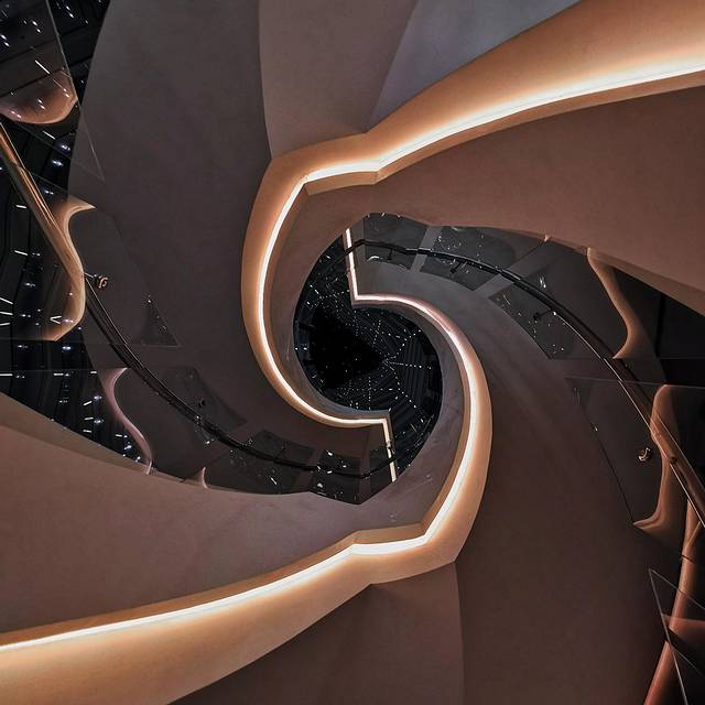 酒店入口处就能看到里面极具设计感的大堂天花板,然而这才是开始。