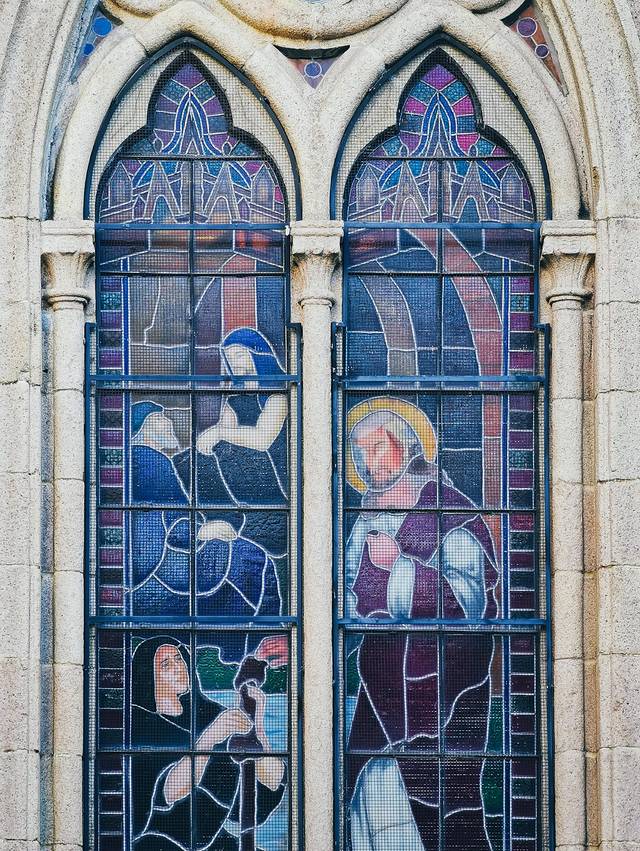 从外面透过窗户看到的教堂里墙上的玻璃,有种看万花筒的感觉,透露着一种神秘却又美丽的气息。