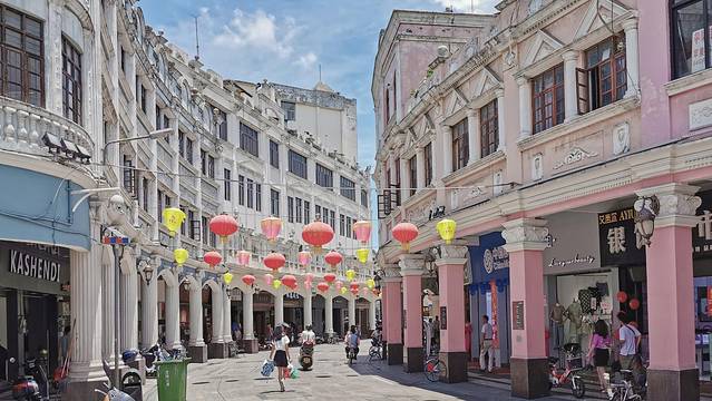 充满现代气息的步行街某些地方也会留着一些老式的街道和建筑。