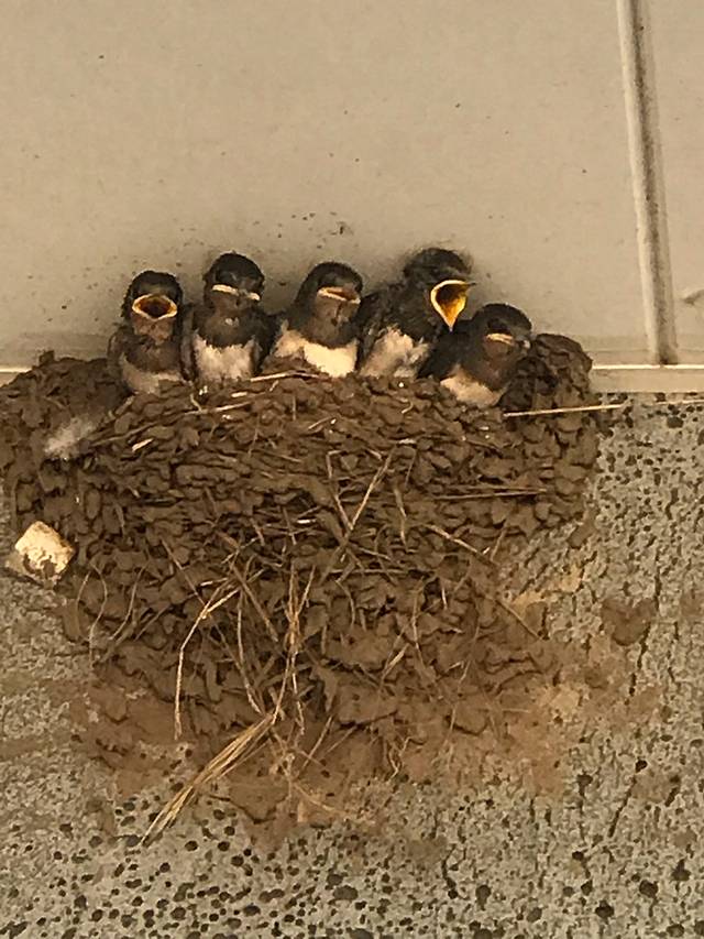在公园门口意外地看到了一窝小鸟