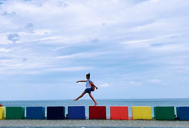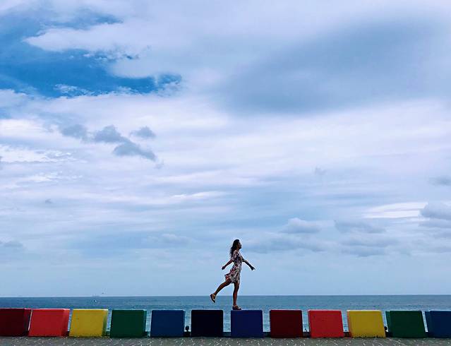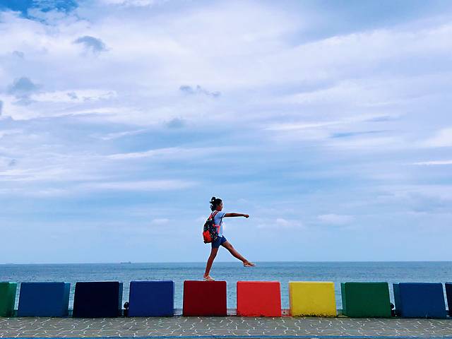 彩虹公路离机场很近,就是靠海的一段公路,因各种颜色鲜艳的石墩得名。很多人沿着道路跑步,随便找个石墩站上去,妥妥地就是一张网红照片。