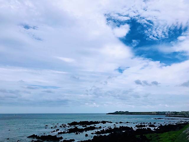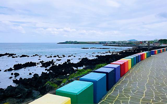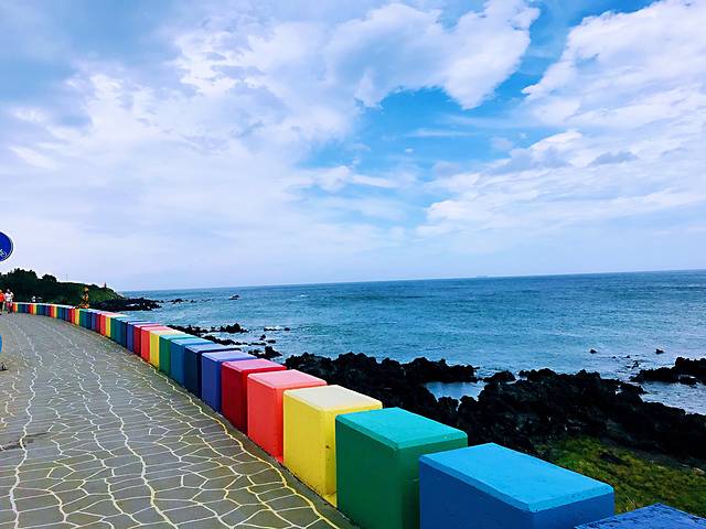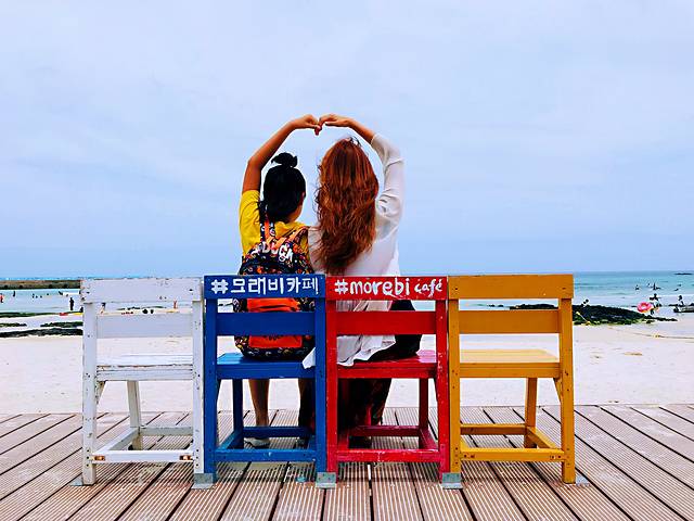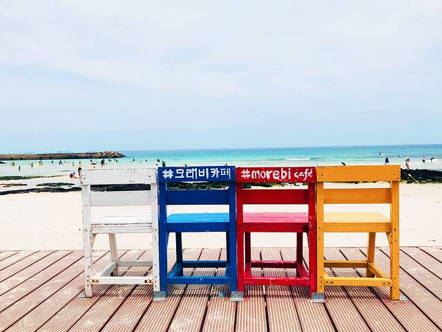 济州岛是个火山喷发频繁的岛屿,海滩大多岩石分布,高冷ins风。月汀里是唯一拥有细白沙滩的海滩,天气好的时候,海水会呈现果冻般的颜色。海滩边,有三三两两的彩色座椅,随手一拍就是网红照片。各种咖啡屋林立,随便找一家进去。面朝大海,看海、看冲浪的人们,发呆或思考人生。