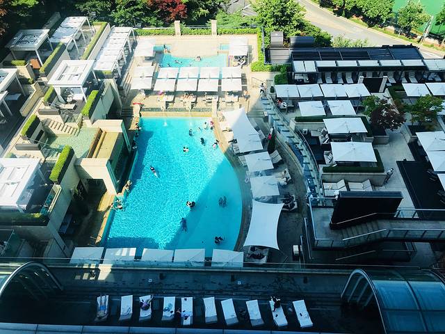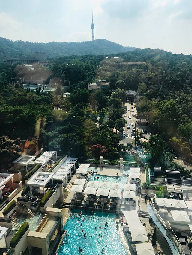 酒店大堂每天从早到晚坐着很多客人,非常悠闲的样子,一层售卖的蛋糕卖相很好,价格也算公道。酒店房间大小适中,与首尔塔遥遥相对,夜景甚至更佳。但说实话一晚2300元的性价比真心不如国内的度假酒店。马桶自动感应冲水很nice,酒店的插座无需转换插头,每天免费供应6瓶矿泉水;拖鞋和洗澡巾都非常舒服。吐槽一下游泳池,室内泳池很小,且只在周末对孩子们开放;室外泳池也不大,额外收费并且很贵也是醉了,住过那么多酒店还真没有过这种经历,真心想不明白是为什么?酒店没有中午服务,服务人员的英语也很生硬、难以交流,这点不太爽。
