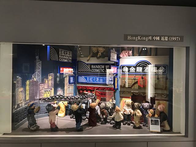 进馆后发现其实不大,地下三层各有特色。泰迪熊历史馆,罗列了一些历史上的大事记,诸如铁达尼号、人类登上月球、香港回归等;泰迪熊名人比较有趣了,蒙娜丽莎、梵高、乔布斯、爱因斯坦、卓别林、李小龙等名人都被做成泰迪熊的模样,虽然没有明确的介绍,但是一看标志性的装束就认出来了。