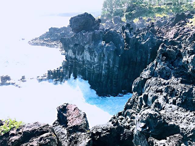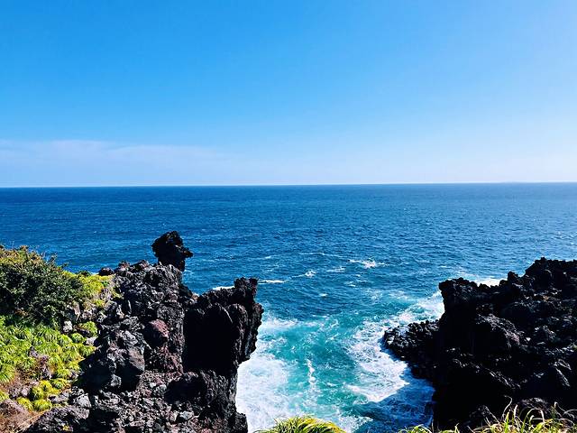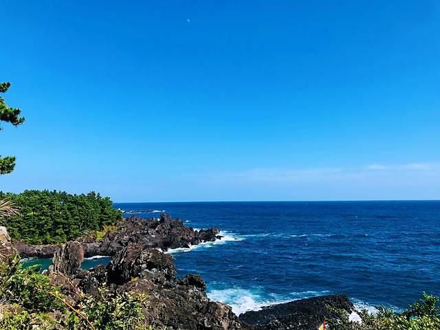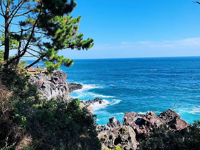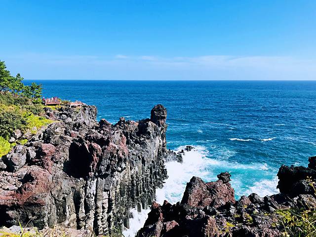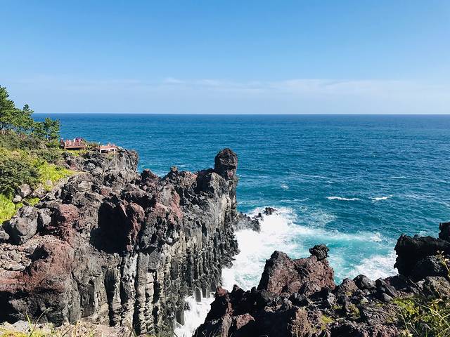 柱状节理带,位于一个小公园内,是汉拿山火山爆发的熔岩,遇海水冷却收缩形成的黑色柱状岩石带,长达一千米,是济州岛闻名海内外的一大自然景观。