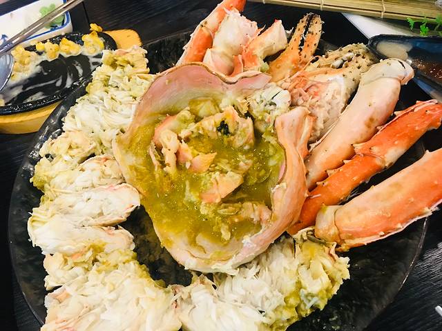 清蒸蟹身,以前总觉得长脚蟹雪蟹没有肉x其实是没吃对啊!同等重量的情况下,帝王蟹身上的肉就厚实多了!