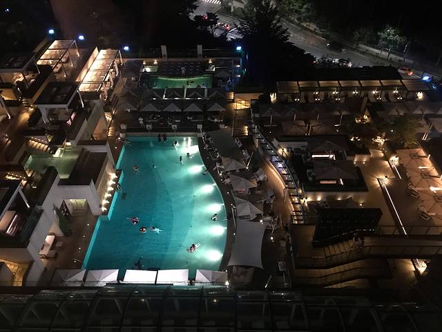 感觉整个步行街乱乱的,有点儿像低配版的王府井。没看到什么大品牌店,好多类似U衣库档次的。街边小吃也很多,看着都没什么食欲。逛逛街随便买了几件衣服就回酒店游泳了